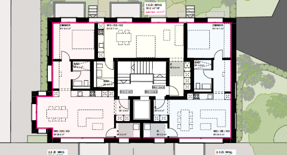 Das Projekt richtet sich bewusst an Mieterinnen und Mieter ohne Privatfahrzeuge. Entsprechend wird ein überdurchschnittliches Angebot an Fahrradabstellplätzen vorgesehen, ergänzt durch E-Bike-Ladestationen sowie gemeinschaftlich nutzbare Fahrradutensilien.