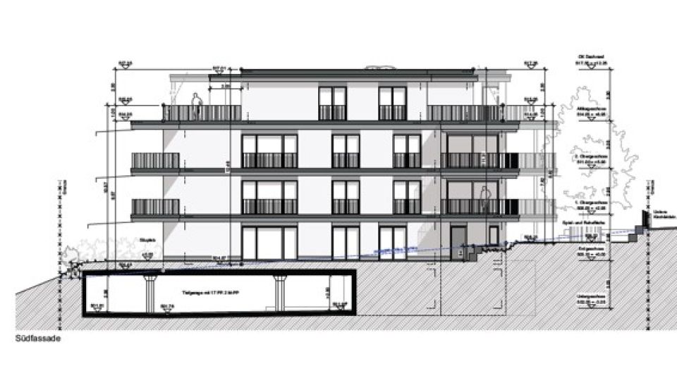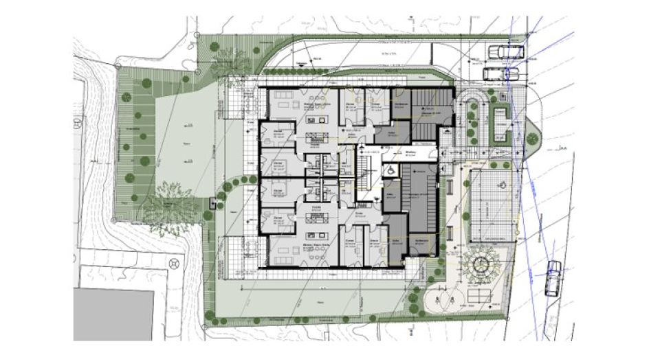Vorgesehen ist ein kompakter Baukörper, der ein Erdgeschoss, zwei Obergeschosse und ein Attikageschoss aufweist. Die Obergeschosse sind vierbündig aufgebaut. Im Erdgeschoss und im Attikageschoss sind je zwei Wohnungen vorgesehen. Somit entstehen 12 Wohnungen, die für Familien als auch für Paare und Einzelpersonen geeignet ist.